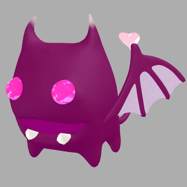 Jinxxy tags: Demon, Bat, Follower, Pet, Cute, Kawaii, Innocent, Textures, Materials, Wings, Purple, Blue, Green, Black, White, Red, Custom, Unique, Teeth, Gems, Horns, Small, Tiny, Smol, Exercise, Ball, Rubber, Eyes, Eye, Hearts, Heart, Flying, Smile